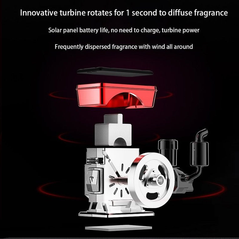METALLGEHÄUSE MIT SOLAR-TECHNOLOGIE: Unser Auto-Aromadiffusor besteht aus hochwertigen Materialien, ist mit einer Solarturbine ausgestattet, robust und einfach zu installieren.