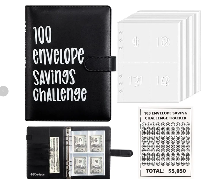 🎁Eine großartige Möglichkeit, mit dem Sparen zu beginnen! 🎉 Das 100-Umschlag-Challenge-Kit wird mit einer A5-Ordnerhülle geliefert, die über Kartenfächer, ein Bargeldfach und einen Edelstahlordner verfügt.💸