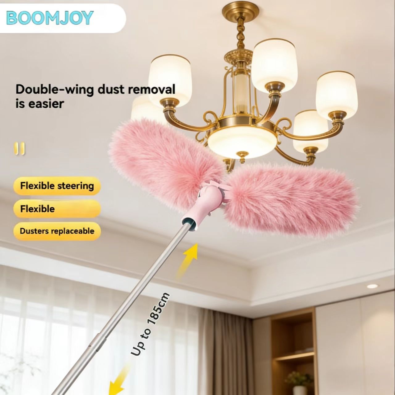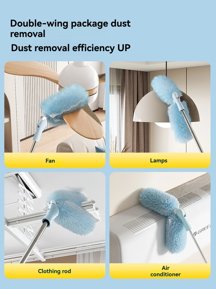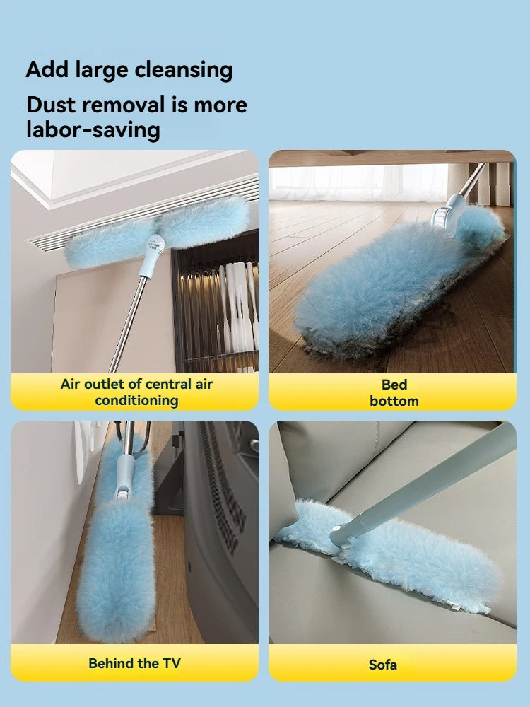 Cleanhome Doppelseitiger Einweg-Staubwedel Haushaltsreinigung Einziehbare Stange Verlängerungsstange Biegsam Austauschbarer Kopf