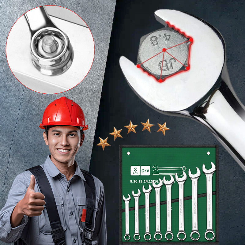 KRAFTVOLLES ANZIEHEN: Unser Kombischlüsselsatz verfügt über ein einzigartiges polygonales Design, mit dem sich Schrauben und Muttern leicht anziehen lassen und das ein starkes Befestigungserlebnis bietet. Das Doppelkopfdesign bietet ein breiteres Anwendungsspektrum.