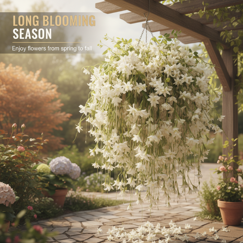 FANTASTISCHER BLÜTENFALL: Verwandeln Sie Ihren Außenbereich in eine malerische Oase. Diese kräftige Kletterpflanze bildet dichte, kaskadenartige Büschel eleganter weißer Blüten, die an Spalieren, Zäunen oder Pergolen einen atemberaubenden Wasserfalleffekt erzeugen.
