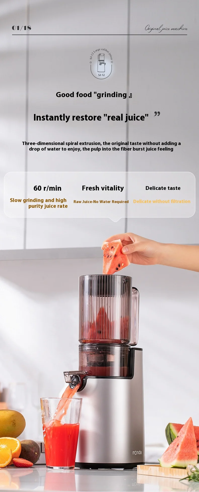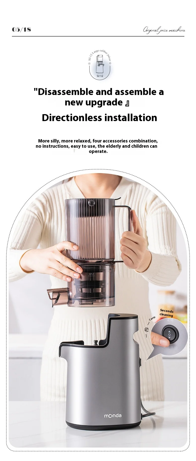 Kaltpress-Entsafter mit breitem Einfüllschacht, leiser Slow Juicer für Obst und Gemüse, hohe Saftausbeute, leicht zu reinigen, BPA-frei, tropffrei