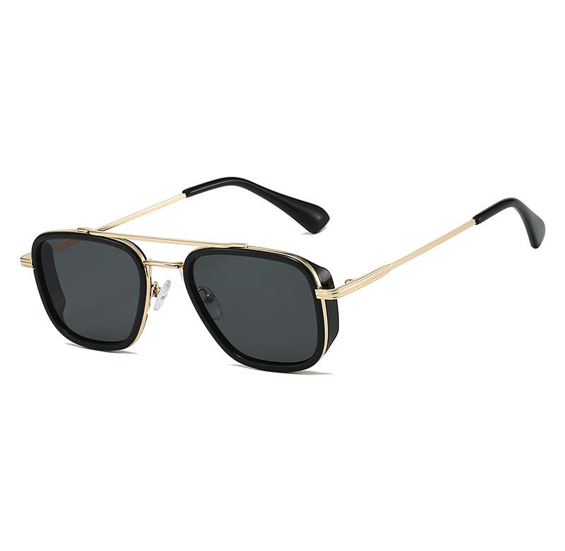 Flugsonnenbrille für Damen, Designer-Marke, Pilotenbrille, UV400, schlichtes Design, modisch, passende Tönung, Goldverzierung, schwarzer Rahmen, unisex