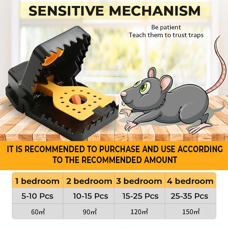 Im Vergleich zu herkömmlichen Mausefallen aus Holz oder Metall sind diese Mausefallen aus Kunststoff effektiver und sicherer. Mit der starken Edelstahl-Doppelfeder ist der Mechanismus empfindlich, und selbst die kleinste Maus kann sofort gefangen werden.