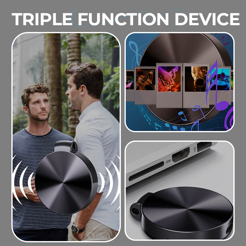 KOMPAKTES, DISKRETES DESIGN – Mit runder Zinklegierungskonstruktion. Ultradünnes 9-mm-Profil mit Schlüsselanhänger zum Tragen an einer Halskette. Ideal für Vorträge, Besprechungen und den persönlichen Gebrauch.