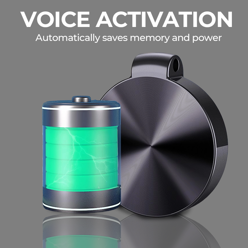 INTELLIGENTES DESIGN – Wählen Sie zwischen kontinuierlicher Aufnahme oder sprachaktiviertem Modus. Die intelligente Spracherkennung pausiert automatisch bei Stille, um Strom und Speicherplatz zu sparen. Benutzerdefinierte Aufnahmesegmente organisieren Dateien in Intervallen von 30/60/90 Minuten.