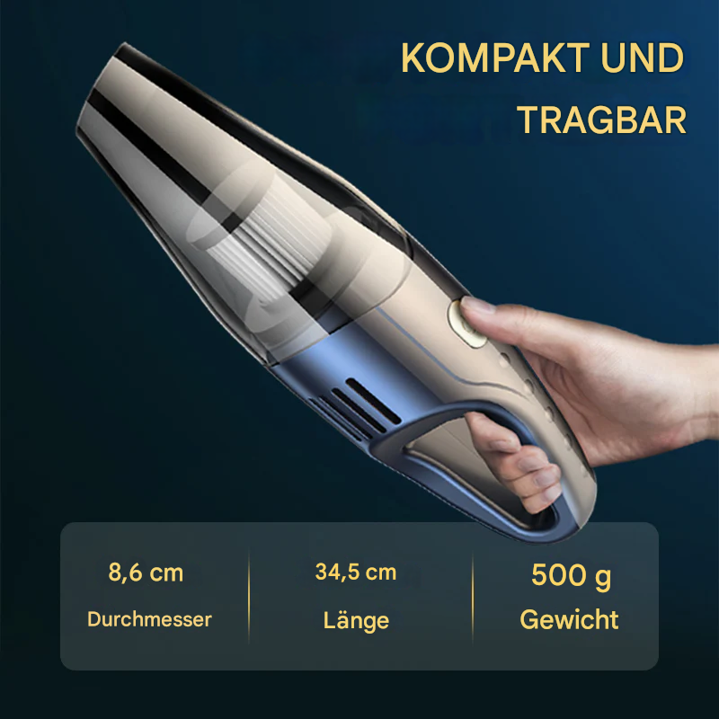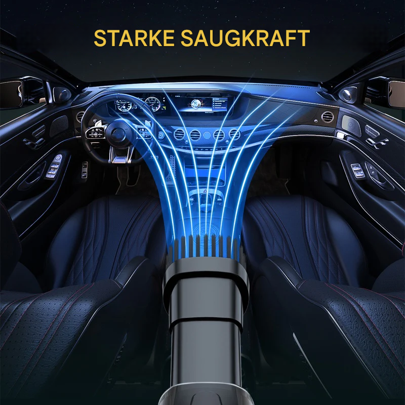 STARKE SAUGKRAFT: Ausgestattet mit einem Hochgeschwindigkeits-Turbomotor liefert dieser Staubsauger eine starke Saugkraft, ohne zu überhitzen. Er entfernt Staub und Schmutz effizient aus jeder Ecke Ihres Autos und bietet eine stabile, dauerhafte Leistung.
