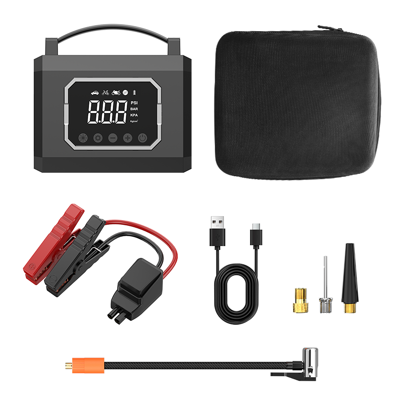 Schon genug von leeren Batterien und platten Reifen? 🚗💨 Dieser tragbare Auto-Jump-Starter mit integriertem Luftkompressor bringt dich schnell wieder auf die Straße – Startkraft und Reifenfüllung in einem handlichen Notfall-Kraftpaket.MERKMALE