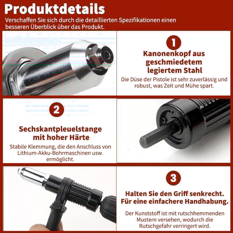🛠️Professioneller elektrischer Nietpistolenadapter – Verwandeln Sie Ihre Bohrmaschine in ein Nietgerät