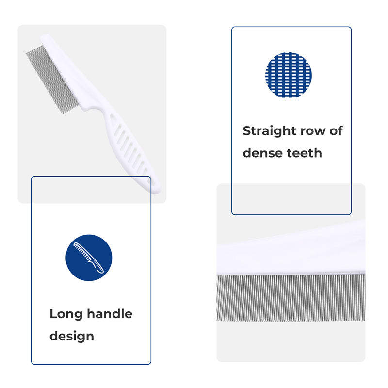 - Die Kammzähne sind aus Edelstahl, um Rost zu vermeiden, und die Edelstahlzähne sind fest in den Kunststoffclip eingebettet, um zu verhindern, dass der Kamm herausfällt, und schützen so die Gesundheit von Ihnen und Ihren Haustieren.