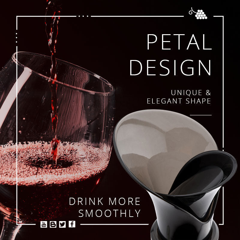 Er ist sowohl ein Weinflaschenverschluss als auch ein Weinausgießer. Durch sein einzigartiges Design verwandelt er sich mit einer einfachen Drehung von einem Weinflaschenverschluss in einen Dekanter und spart so Zeit beim Einschenken und Aufwachen.