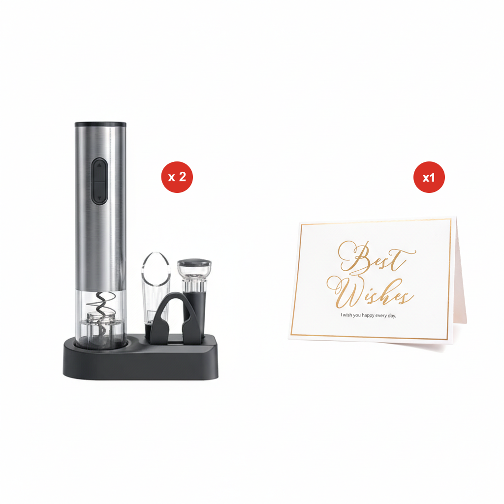 Das Set enthält:Korkenzieher x1+Gewindeschneider x1+Luftsprudler x1+Vakuumkorken x1+Aufbewahrungsbasis x1