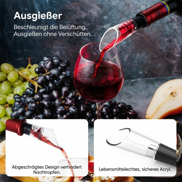 【Tropffreier und frischer Geschmack】Der Weinausgießer ist aus lebensmittelechten Materialien hergestellt. Der Flaschenausgießer und der Vakuumstopfen verhindern, dass der Wein tropft. Bewahren Sie das Aroma und die Reinheit des Weins, indem Sie die Luft mit dem Vakuumstopfen abpumpen.