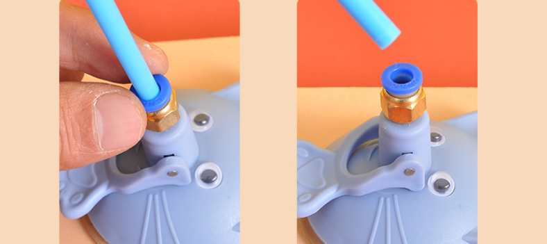 2️⃣ Point the cat stick at the hole of the suction cup.