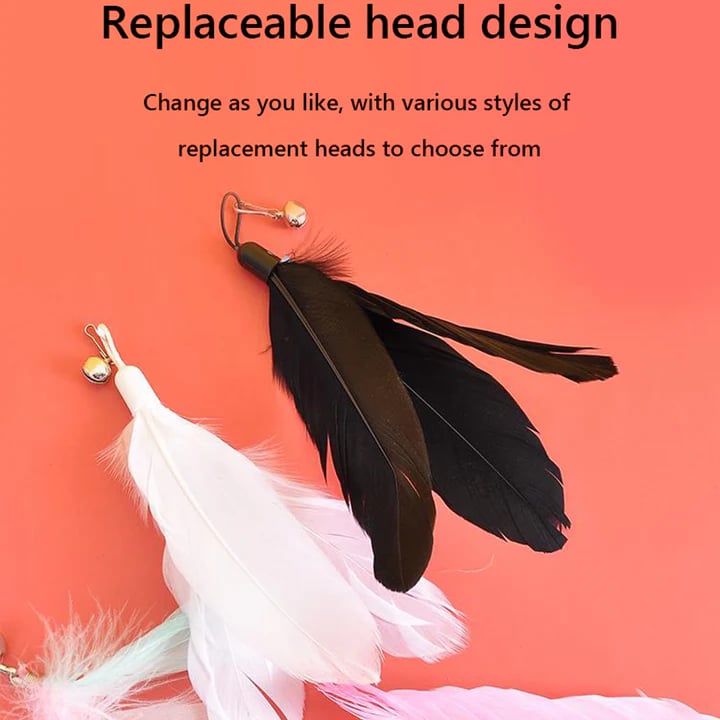 🔄 Interchangeable feather heads: Customize play to your cat's taste with interchangeable feather heads. No more unnecessary toys - switch heads whenever you want for variety and extra playtime fun!