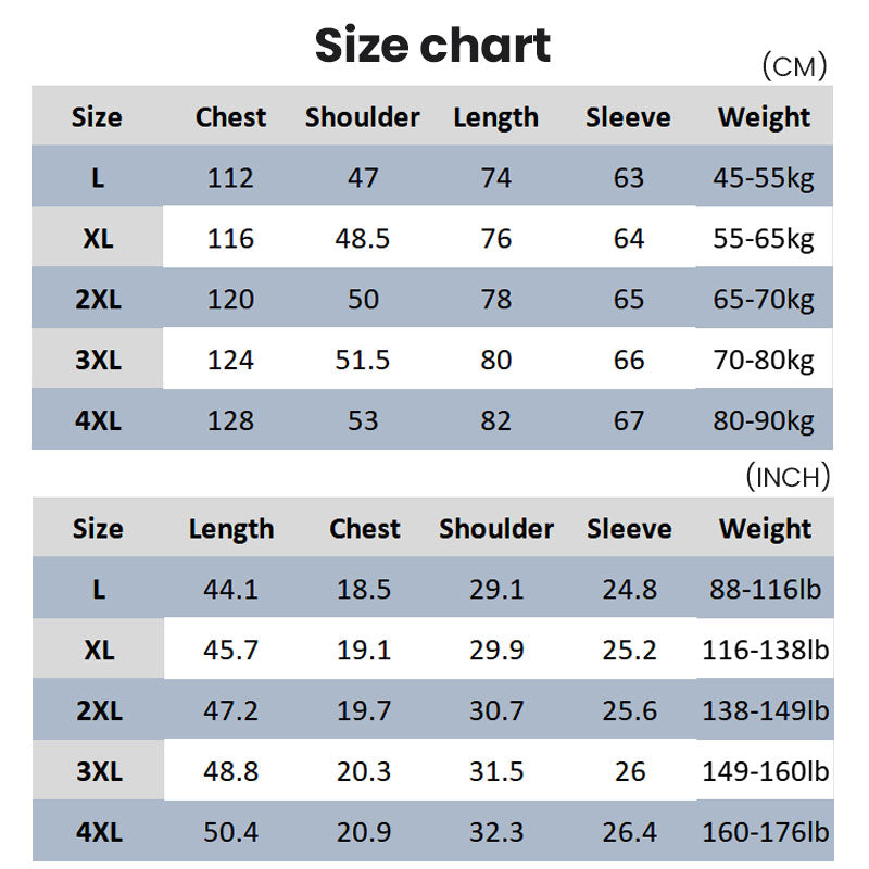 Größe: L, XL, 2XL, 3XL, 4XL