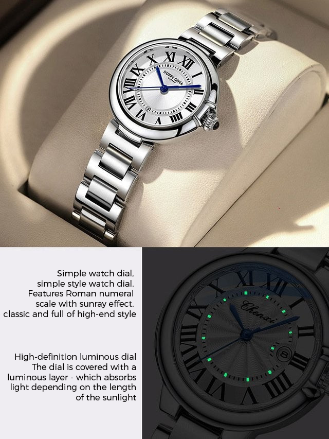 💘Leuchtendes Damen Stahlband Wasserdichte Quarzuhr
