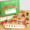 2 WAYS TO PLAY - Includes many pattern cards and colorful fruit, plants, candy, food beads! Kids can follow the cards or create freely with this wooden caterpillar bead.